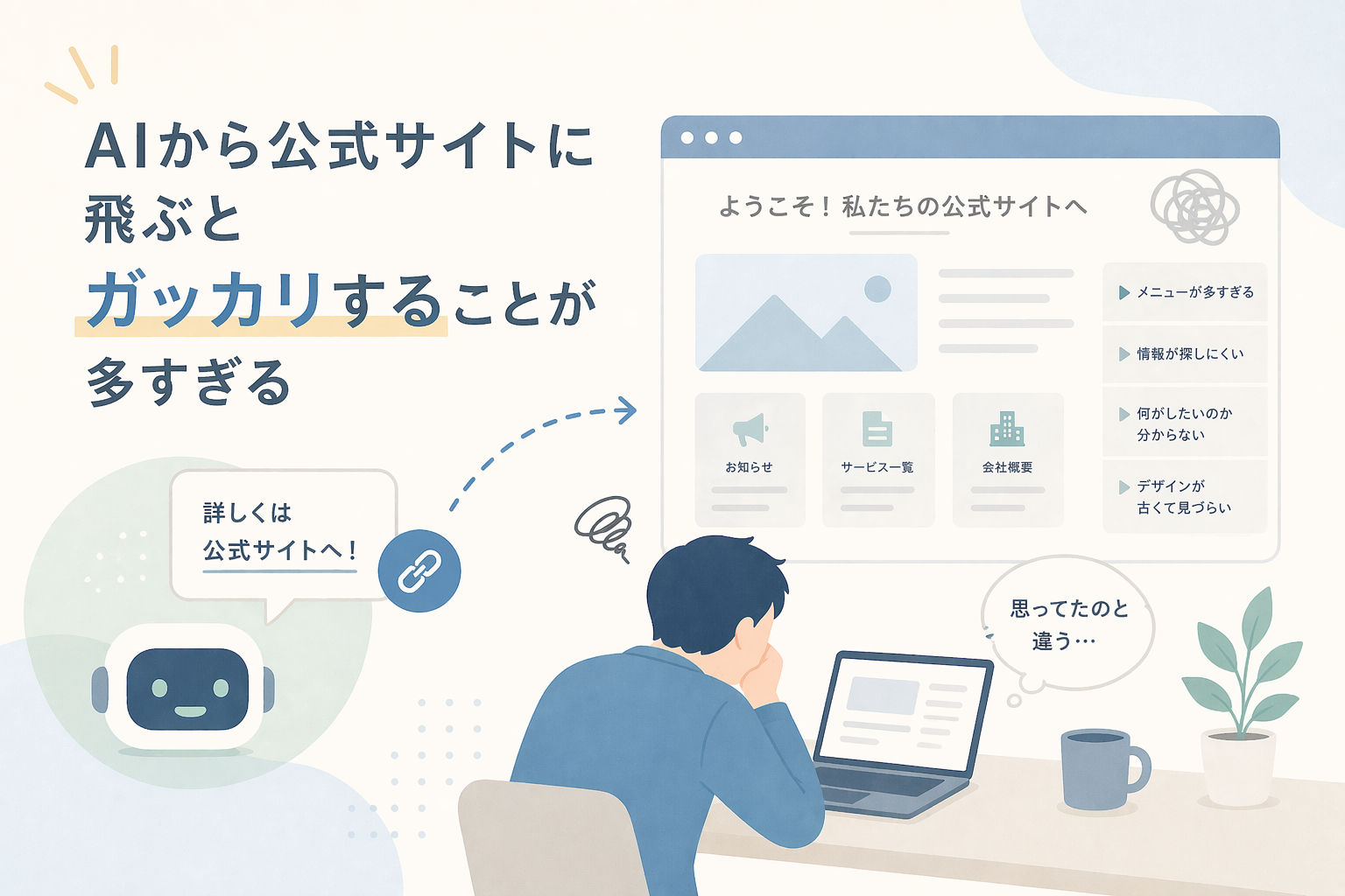 AI経由で公式サイトを開いた読者が、入口で期待を下回ると離脱しやすい話は、 AIから公式サイトに飛ぶとガッカリすることが多すぎる でも整理しています。