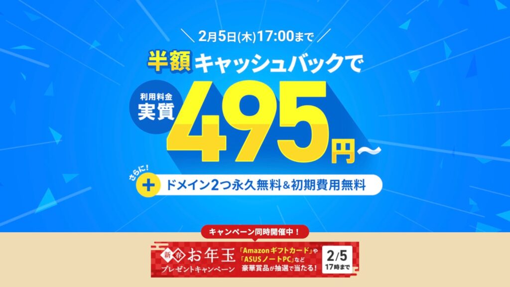 エックスサーバーを最もお得に利用できるキャンペーン情報について詳しく知りたい方はぜひ、【297円で使える!?】エックスサーバーのキャンペーン・クーポン情報【2025年最新版】をご覧ください!